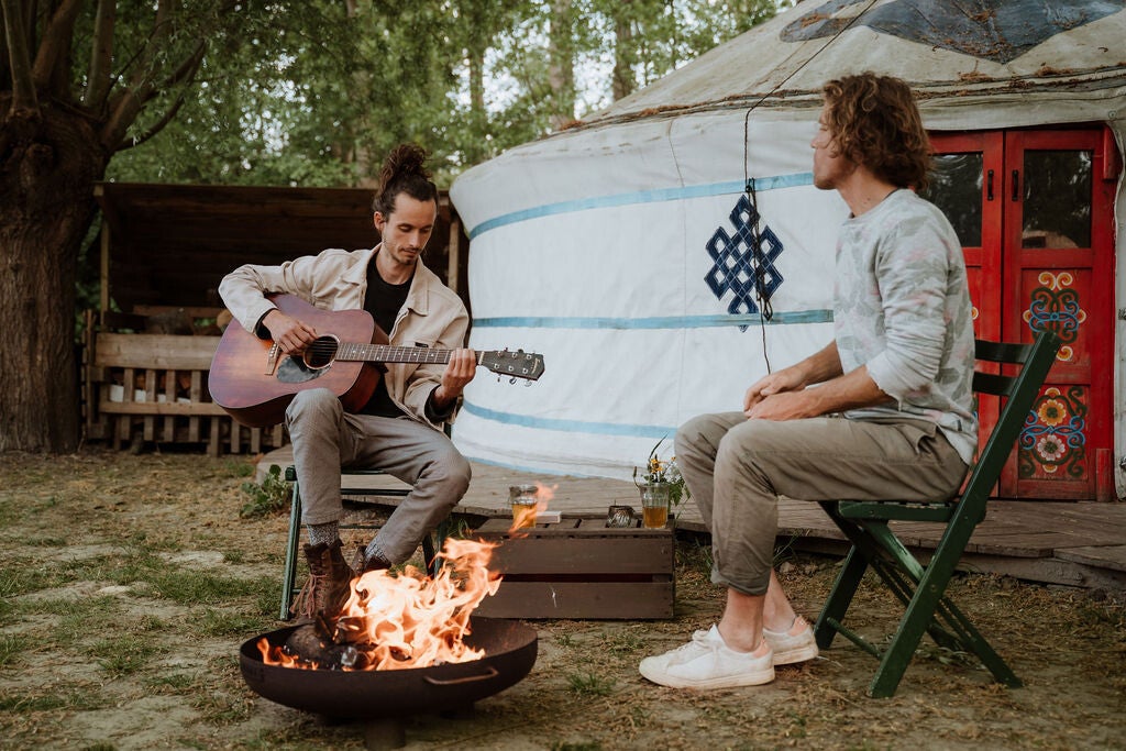 Onthaasten doe je in onze yurt. Wanneer je binnentreedt ervaar je direct een gevoel van geborgenheid. Doordat deze in Mongolië vervaardigde tent geen ramen heeft, is de buitenwereld snel op afstand. De ideale plek om tot jezelf te komen! Middenin De Yurt staat een houtkachel, wat deze accommodatie ook geschikt maakt voor een verblijf in de winter. Direct naast De Yurt is een royale veranda met buitenkeuken en zitgelegenheid. Er kunnen twee volwassenen en eventueel twee (kleine) kinderen in slapen.